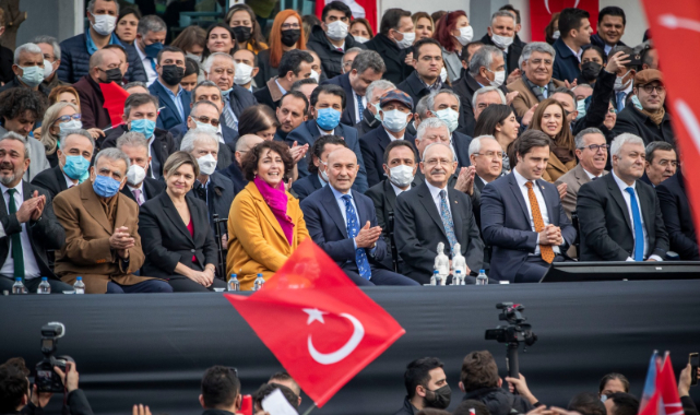 CHP Lideri Kılıçdaroğlu, “İzmir için tarihi bir gün. Büyün baskılara rağmen bütün ekonomik açıdan kısıtlamalara rağmen belediye başkanlarımız ellerinden gelen çabayı gösteriyorlar. Yakında toplayacaksın bakanlar kurulunu “elektrik zamlarını geri al”. Sarayında oturacaksın her şeyin bedava olacak, hiçbir şey ödemeyeceksin, söylüyorum, geriye almasını istiyorum. Geriye al. Hükümet yok ki ortada istifa etsin. Tek kişi var. Siz güzel bir Türkiye’de yaşayacaksınız. Yeniden özgürlüğü tadacaksınız. Barışı, özgürlüğü getireceğiz. 84 milyonun kucaklaştığı güzel bir Türkiye’yi birlikte inşa edeceğiz. Gerçekten de bu ülkeye adaleti ve huzuru getireceğiz. Bu ülkede binlerce çocuğun yatağa aç girdiğini, evlerde huzurun olmadığını biliyorum, geçinmesinin zor olduğunu biliyorum. Sandık gelecek göndereceğiz onları. Demokrasi içinde göndereceğiz. Sizler twit attığınızda korkmayın. Millet ittifakı geldiğinde korkmayacaksınız. İktidar olduğumuzda gençlerimiz, kadınlarımız, çocuklarımız için çalışacağız. Halktan topladığımız her kuruşun hesabını halka vereceğiz. Beraber güzel Türkiye’yi inşa etmek zorundayız” dedi