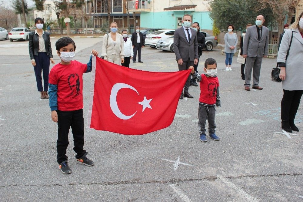 İstiklal Marşını yürekten okuyan herkese teşekkür eden Yahşi, "İzmir'deki 3 bin 600 okulda da bugün itibari ile İstiklal Marşını okuduk. Hem Pazartesi, hem de Cuma günleri İstiklal Marşımızı gür bir sesle okuyacağımız günleri en kısa zamanda kavuşacağımıza ümit ediyorum" temennisinde bulundu.