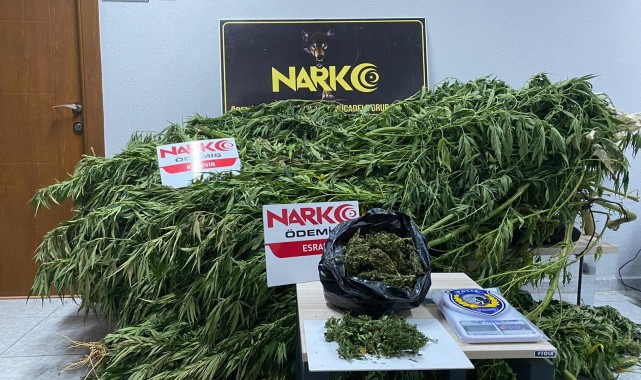 İzmir'in Ödemiş ilçesinde, polis ekiplerince şüpheli bir şahsa ait bahçede yapılan aramalarda; 80 kök Hint kenevir bitkisi, 1 adet hassas terazi ve 162 gram kubar esrar maddesi ele geçirildi. Şüpheli gözaltına alındı.