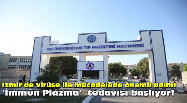 Ege Üniversitesi Tıp Fakültesi Hastanesi, Dünya Sağlık Örgütü (WHO) tarafından önerilen yeni tip koronavirüse (Covid-19) karşı immün plazma yöntemi ile tedaviye başlıyor. Ege Üniversitesi Rektörü Prof. Dr. Necdet Budak, “Üniversitemiz Kan Merkezi, immün plazma alımı için hazır hale getirildi. Şifa bulan hastalarımızı hastanemiz kan merkezine plazma vermeleri için davet ediyorum” dedi.