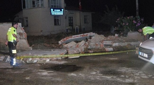İzmir'in Ödemiş ilçesinde yağış ve rüzgar nedeniyle 8 metrelik beton duvarlar yıkıldı.