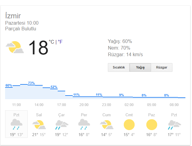 Gündem 19 Kasım 2018 - 11:36 İzmir'de Yağışlı Günler, İşte 5 Günlük Hava Raporu Hafta sonu yağışlı ve soğuk havanın etkisinde olan İzmir’de yeni haftanın da yağışlı geçmesi bekleniyor. Gündem 19 Kasım 2018 - 11:36 Yorumlar TAKİP ET Dinle Yazdır A Büyüt A Küçült Yorumlar Bu hafta içi Cuma gününe kadar sıcaklıkların 8 derece birden düşmesi beklenirken, Cuma gününden sonra hava açacak. Hafta içi özellikle Çarşamba ve Perşembe günü İzmir’in yoğun bir şekilde yağış alması bekleniyor. # izmir# izmir hava durumu YORUMLAR adlı kullanıcıya cevap x Gönder İlginizi Çekebilir İZBETON soruşturmasında villa detayı! Şikayet dilekçesi ortaya çıktı Bornova Belediye Başkanı Eşki'nin serbest bırakılmasına savcılıktan itiraz Başkan Eşki'nin ifadesi ortaya çıktı! Mahkemeden Meslek Fabrikası için kritik karar: Delil tespiti kısmen kabul edildi, Cemil Tugay fabrikaya girdi Son Haberler Kent Kasap’tan yararlanan aileler dayanışma yemeğinde buluştu Kent Kasap’tan yararlanan aileler dayanışma yemeğinde buluştu Başkan Tugay’dan kentsel dönüşüm açıklaması “İzmir dezenformasyon... İran Hürmüz Boğazı'nı Açtı Folkart Academy, İkinci Dönem Mezunlarını Verdi CHP 300 adayı daha açıklayacak CHP 300 adayı daha açıklayacak