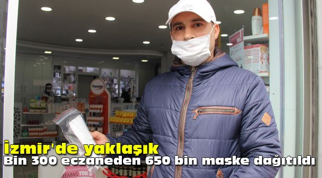 Sağlık Bakanlığının almış olduğu kararla vatandaşlara eczaneler aracılığıyla ücretsiz maske dağıtımı İzmir'de devam ediyor. T.C kimlik numaraları ve Sağlık Bakanlığı tarafından cep telefonlarına gelen kodla maskelerini temin eden vatandaşlar uygulamadan memnun olduklarını belirtti. İzmir Eczacılar Odası Başkanı Tuncay Sayılkan, İzmir merkezde bin 300 eczanenin her birine 500'er maske iletildiğini söylerken, yaklaşık 650 bin maskenin vatandaşlara ulaştırıldığını bildirdi. Öte yandan bugün itibarı ile tükenen maskelerin yerine yarın da yenilerinin geleceği ve maskelerini temin edemeyen vatandaşa dağıtılacağı belirtildi.