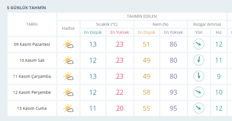 Kentte en yüksek sıcaklıkların 20 ila 23 derece arasında seyredeceği 5 günlük periyotta termometreleri geceleri 11 dereceye kadar geri sayacak.