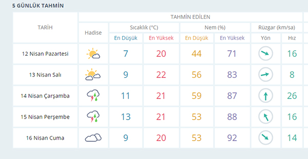 İZMİR İÇİN 5 GÜNLÜK HAVA TAHMİN RAPORU