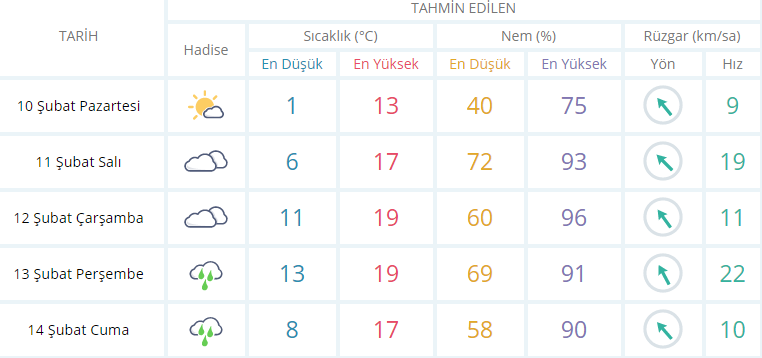 İzmir için haftalık hava tahmini raporu:
