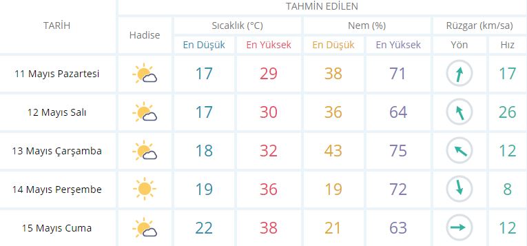 İzmir yeni hafta ile birlikte sıcak hava dalgasının etkisi altına giriyor. Haftayı 29-33 bandında açacak olan kentte Salı'dan itibaren sıcaklıklar tırmanacak. Rüzgarın güneyli yönlerden kuvvetli esmesi hem havayı iyice kurutacak, hem de sıcaklıkları daha da arttıracak. Cuma gününden itibaren ise Afrika üzerinden daha şiddetli bir sıcak hava dalgası geleceği tahmin ediliyor. Sıcaklıklar 40 dereceye dayanacak.