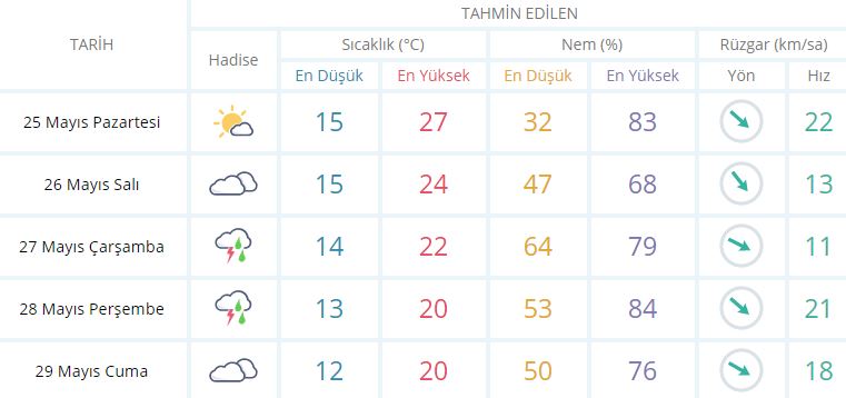 Çarşamba gök gürültülü yağış geçişleri görüleceği tahmin ediliyor. Perşembe günü ise ilimize daha şiddetli bir yağış geleceği öngörülüyor.