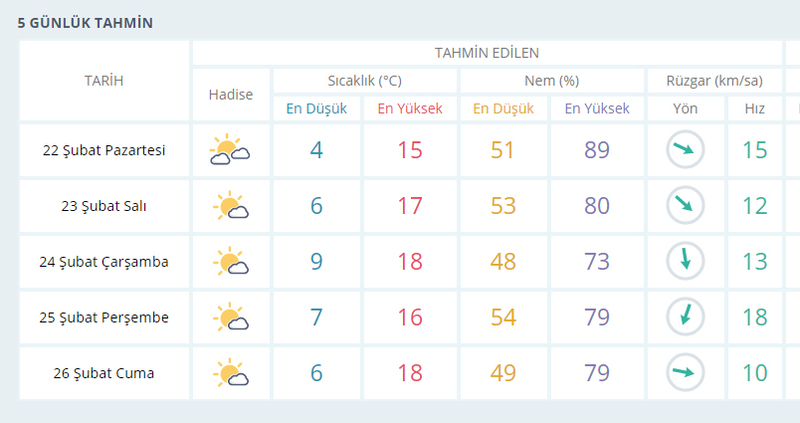 Gündem 22 Şubat 2021 - 09:42 Güncelleme: 22 Şubat 2021 - 09:49 İzmir'de yeni haftada hava nasıl olacak? İzmir'de bu hafta yağış beklenmiyor. Yeni haftayla birlikte sıcaklıkların yükselmesi bekleniyor Gündem 22 Şubat 2021 - 09:42 Güncelleme: 22 Şubat 2021 - 09:49 Yorumlar TAKİP ET Dinle Yazdır A Büyüt A Küçült Yorumlar İzmir’de geçtiğimiz haftalarda kar yağışı, sağanak ve hortumlar etkili olmuştu. Bu hafta ise yağış beklenmiyor. Yeni haftada en yüksek sıcaklıklar da 15 ila 18 derece arasında seyredecek.5 GÜNLÜK HAVA DURUMU # hava durumu# i̇zmi̇r YORUMLAR adlı kullanıcıya cevap x Gönder İlginizi Çekebilir İZBETON soruşturmasında villa detayı! Şikayet dilekçesi ortaya çıktı Bornova Belediye Başkanı Eşki'nin serbest bırakılmasına savcılıktan itiraz Başkan Eşki'nin ifadesi ortaya çıktı! Mahkemeden Meslek Fabrikası için kritik karar: Delil tespiti kısmen kabul edildi, Cemil Tugay fabrikaya girdi Son Haberler Folkart Academy, İkinci Dönem Mezunlarını Verdi Gaziemir’den okul saldırılarına tepki Gaziemir’den okul saldırılarına tepki Gülistan Doku soruşturması: Eski Tunceli Valisi Sonel açığa alındı Dolar ve Enflasyon Beklentisi Yükseldi, Büyüme Frenledi: İşte Merkez... Bornova’da uçkunlar için ilaçlama Bornova’da uçkunlar için ilaçlama