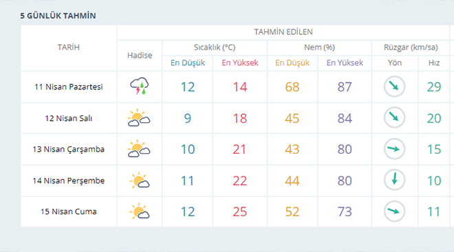 Gündem 11 Nisan 2022 - 09:39 Güncelleme: 11 Nisan 2022 - 11:21 İzmir güne sağanakla başladı! İşte haftalık hava durumu İzmir'de mevsim normallerinin üzerinde sıcaklıklarla geçen günlerin ardından yeni haftada yağışın da etkisiyle termometreler geri sayacak. Gündem 11 Nisan 2022 - 09:39 Güncelleme: 11 Nisan 2022 - 11:21 Yorumlar TAKİP ET Dinle Yazdır A Büyüt A Küçült Yorumlar İzmir'de mevsim normallerinin üzerinde sıcaklıklarla geçen günlerin ardından yeni haftada yağışın da etkisiyle termometreler geri sayacak.İZMİR İÇİN 5 GÜNLÜK HAVA TAHMİN RAPORU YORUMLAR adlı kullanıcıya cevap x Gönder İlginizi Çekebilir İZBETON soruşturmasında villa detayı! Şikayet dilekçesi ortaya çıktı Bornova Belediye Başkanı Eşki'nin serbest bırakılmasına savcılıktan itiraz Başkan Eşki'nin ifadesi ortaya çıktı! Mahkemeden Meslek Fabrikası için kritik karar: Delil tespiti kısmen kabul edildi, Cemil Tugay fabrikaya girdi Son Haberler Kahramanmaraş'taki Okul Katliamında Öğrencilerine Siper Olan Ayla... Seferihisar’da eğitimde şiddete karşı tek ses İYİ Parti Bayraklı İlçe Başkanlığı'nda görev değişimi Narin Davasında Nevzat Bahtiyar'ın İndirimi İptal: 17 Yıl Hapis Cezasına... Tunç Soyer’den cezaevinden dikkat çeken açıklama: 'Suç yaratamayacaksınız!' Karma Resim Sergisi Bornova’da açıldı Karma Resim Sergisi Bornova’da açıldı