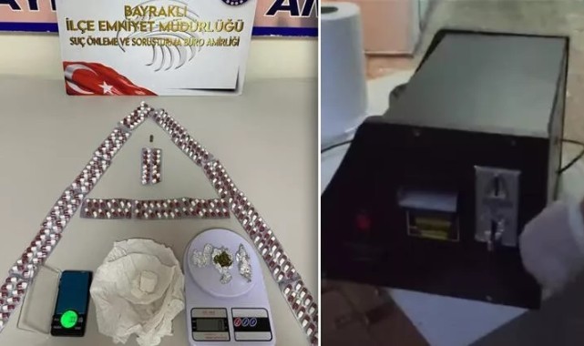 Bayraklı İlçe Emniyet Müdürlüğü Bayraklı Suç Önleme ve Soruşturma Büro Amirliği ekipleri, suç ve suçluyla mücadelede çalışmalarını titizlikle sürdürüyor. Bu çerçevede ekipler tarafından yapılan çalışmalarda L.A., isimli şüphelinin ilçede uyuşturucu madde ticareti yaptığı tespit edildi.Bunun üzerine harekete geçen ekipler, şüpheli L.A.,'yı takibe aldı. Uyuşturucu ticaretini 3 farklı ev ile bir iş yerinden yapıldığını tespit eden ekipler, adreslere eş zamanlı operasyon düzenledi.UYUŞTURUCULARI OYUN KUTUSUNA SAKLAMIŞLARYapılan operasyonda, oyun kutusuna vidalanmış şekilde 224 adet uyuşturucu hap, 31 gram taş kokain, 1,2 gram esrar ve 2 adet hassas terazi polis ekipleri tarafından ele geçirildi.Öte yandan, uyuşturucu ticareti yaptığı tespit edilen L.A., Y.S. ve F.H.A., yapılan operasyonda polis ekiplerince gözaltına alındı.Şüphelilerin emniyetteki işlemleri sürdüğü öğrenildi.SÖZCÜ