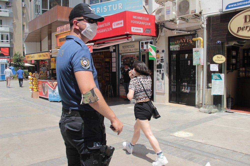 İzmir Valisi Yavuz Selim Köşger'in yaptığı açıklama ile maske kullanımının kent genelinde zorunlu hale gelmesinin ardından İzmir İl Emniyet Müdürlüğüne bağlı birimler, kentin bir çok noktasında maske denetimi yaptı. Alsancak semtinde bulunan Kıbrıs Şehitleri Caddesi'nde de denetim yapan ekipler, sıkı kontrol yaptı. Ekiplerin denetiminde maskelerini çenelerinin altında taşıyan vatandaşların polisi görünce maskelerini düzeltmesi dikkat çekti. Maskelerini çene altında taşıyan vatandaşlar polis tarafından uyarılırken, hiç maske taşımayan şahıslara ise 900 lira idari işlem uygulandı.