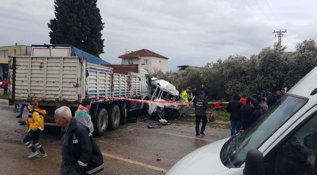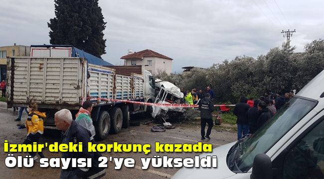 İzmir'in Torbalı ilçesinde meydana gelen, iki tır ile minibüsün karıştığı kazada, ölenlerin sayısı 2'ye yükseldi.