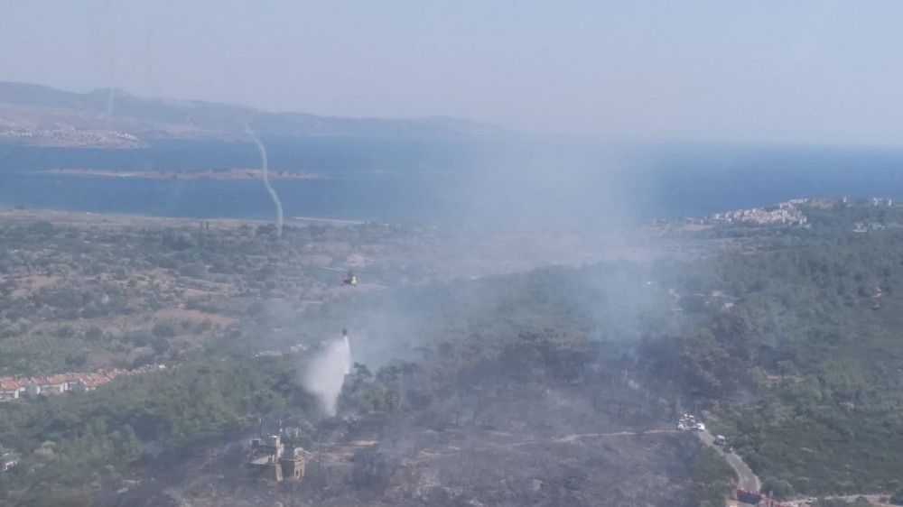 İzmir orman Bölge Müdürlüğünün 10 arazöz, üç helikopter ve bir uçakla müdahale ettiği yangın, ekiplerin başarılı çalışması sonucu kontrol altına alındı. Bölgede soğutma çalışmalarının sürdüğü öğrenildi. Öte yandan etkilenen alanın tahmini 2 hektar civarında olduğu bildirildi.