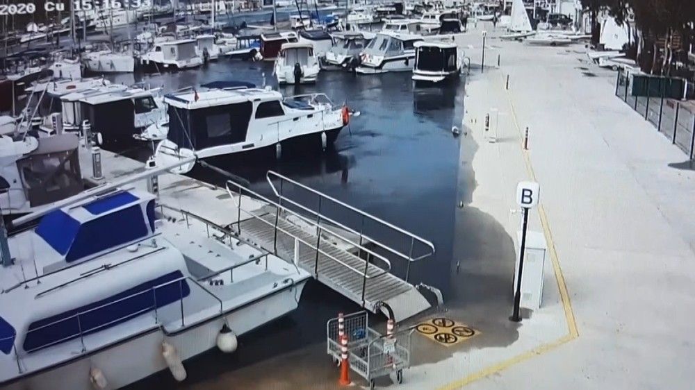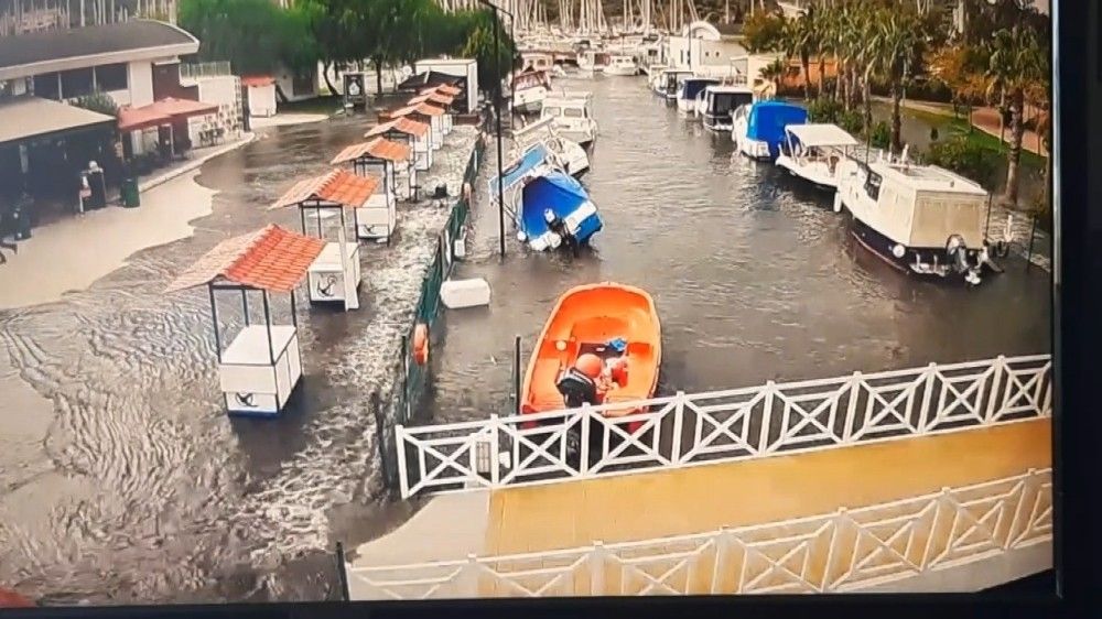 Kısa süre içerisinde marina başta olmak üzere kale içi mevkiini sular altında bırakan tsunami önene ne varsa katıp götürdü. Yaşanan o panik anları ve denizdeki hareketlenme ise marinanın güvenlik kameraları tarafından an be an kaydedildi. Denizin yükseldiğini hisseden bazı tekne kaptanları akıntıya karşı son sürat gitmeye çalıştığı da kameralara yansıdı.