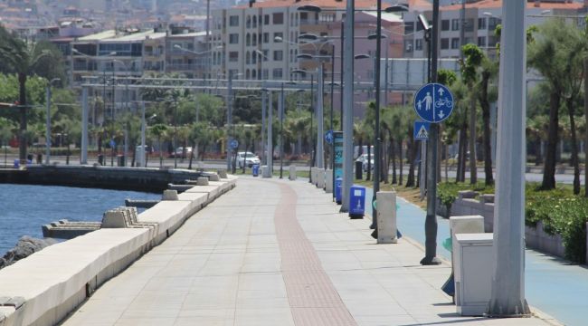 Tam kapanma önlemlerinin uygulandığı İzmir'de de; cadde, meydan ve sahillerin boş kaldığı gözlemlendi. İzmir İl Emniyet Müdürlüğü ekipleri, şehirdeki araç trafiğinin en yoğun olduğu noktalarda denetimler yapmaya devam etti. Ekipler, araç sürücülerinin sokağa çıkma belgelerini kontrol ederek, tam kapanma tedbirlerini uygulamayı sürdürdü. İzmir Büyükşehir Belediyesi zabıta ekipleri de, Kordon'da araçla dolaşarak sokağa çıkma kısıtlamasına uyulması yönünde anonslu uyarılar da bulundu. Kentin birçok noktasında da ekiplerin temizlik mesaisi vardı.