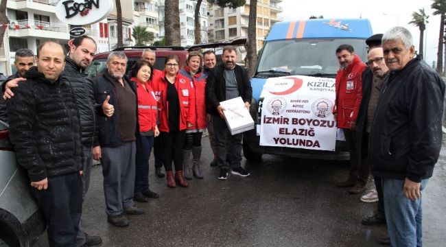 24 Ocak tarihinde meydana gelen depremde, Elazığ ve Malatya'da 41 kişi hayatını kaybetmiş ve 1600'ün üzerinde vatandaş yaralanmıştı. Depremden etkilenen 100 bin kişi ise evlerinden mahrum kalmıştı. Binlerce depremzede çadır ve spor salonlarında yaşamlarına devam ederken Türkiye'nin dört bir yanından deprem bölgesine yardımlar gönderildi. Depremzedelere bir yardım da İzmir Boyoz ve Börek Sanatkarları Federasyonundan geldi. Kızılay Karşıyaka Şubesi aracılığıyla gerçekleşen yardımda İzmirli boyozcular, 3 bin adet boyozu kutulara doldurdu. İzmirli boyoz ustaları, Kızılay Karşıyaka Şube Başkanı Kamil Karadeniz ve şube çalışanları boyoz dolu kutuları kargo aracına yükledi. Daha sonra kargo aracı Elazığ'ulaşmak üzere yola çıktı.
