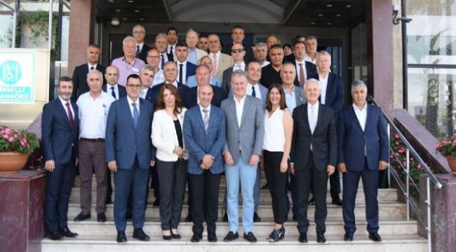 İzmir Ticaret Odası Yönetim Kurulu Başkanı Mahmut Özgener başkanlığında, İZTO Meclis Başkanı Selami Özpoyraz, İZTO Yönetim Kurulu Başkan Yardımcısı Cemal Elmasoğlu, İZTO Yönetim Kurulu ve Meclis üyeleri ile sektör temsilcilerinden oluşan heyet, İzmir Büyükşehir Belediye Başkanı Tunç Soyer ile biraraya geldi. Büyükşehir Belediyesi Çetin Emeç Toplantı Salonu’nda gerçekleşen toplantıya belediye bürokratları da katıldı. İZTO bünyesinde faaliyet gösteren 79 meslek komitesinden derlenen sorun, öneri ve talepleri Tunç Soyer’e aktaran İZTO Yönetim Kurulu Başkanı Mahmut Özgener “Sayın Başkanımızla İzmir Ticaret Odası üyelerinin sorunları aktarmak, kente ilişkin çözüm önerilerimizi ve talepleri iletmek üzere bir araya geldik. Özlediğimiz bir yaklaşımdı bu. Tüm üyelerimiz adına komitelerimizden gelen sorunlara gösterdiği duyarlılık nedeniyle Sayın Tunç Soyer’e teşekkür ediyorum” dedi.AY SONUNDAN İTİBAREN ÇÖZÜMLER BAŞLAYACAK