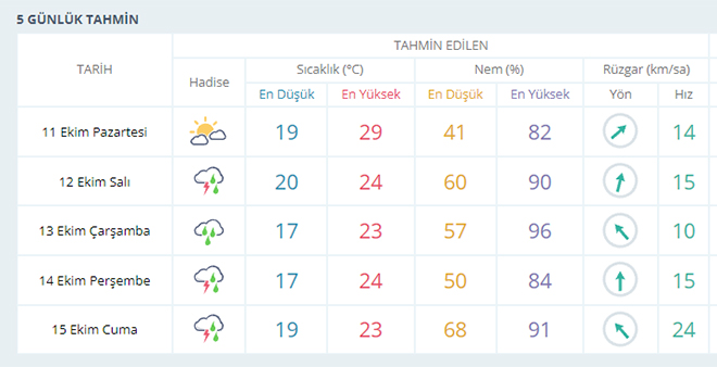 İZMİR İÇİN 5 GÜNLÜK HAVA TAHMİN RAPORU