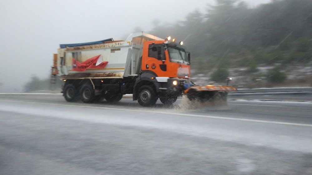 Covid-19 tedbirleri kapsamında sokağa çıkma kısıtlamasının olması nedeniyle araç trafiğinin hafif olduğu Sabuncubeli geçidinde ise Karayolları ekipleri kar küreme ve buzlanmayı engellemek için yollara tuz serpme işlemi gerçekleştirdi.