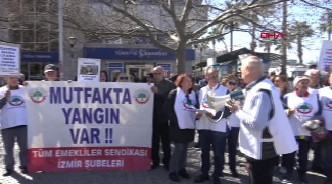 Emekli-Sen'den 'Mutfakta yangın var' eylemiTÜM Emekliler Sendikası İzmir Şubeleri, yüksek zam ve yaşam pahalılığına dikkat çekmek amacıyla 'Mutfakta yangın var' sloganıyla eylem yaptı. Tencere, tava ve kaşıklarla ritim tutan sendika üyeleri, mutfakta yangın olduğunu, artık markete gidemez hale geldiklerini ileri sürdü.Tüm Emekliler Sendikası tarafından eş zamanlı olarak gerçekleştirilen 'Mutfakta yangın var' eylemine, İzmir şubeleri de katıldı. İzmir'de Konak Meydanı'nda düzenlenen eylemde, bir grup sendika üyesi, zamlara ve yaşam pahalılığına dikkat çekmek amacıyla bir araya geldi. Eyleme CHP Konak İlçe Başkanı Çağrı Gruşçu da destek verdi. Tencere, tava ve kaşıklarla ritim tutan sendika üyeleri, mutfakta yangın olduğunu, artık markete gidemez hale geldiklerini söyledi. 'Soğan bahane, soygun şahane', 'Sadaka değil insanca yaşam istiyoruz', '12 milyon emekli kaç ayakkabı kutusu eder', 'Canımıza tak etti, yeter gari' dövizlerini taşıyan sendika üyeleri, var olan maaş zamlarıyla emeklilerin insanca yaşamasının mümkün olmadığını dile getirdi.