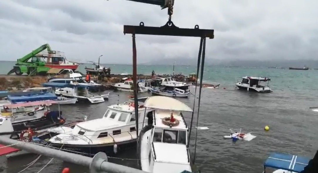 Öte yandan batan teknelerin kurtarılması için çalışma başlatıldı. Tekneler, vinç yardımıyla denizden alınarak kıyıya çıkarılırken, maddi hasarın büyük olduğu aktarıldı.
