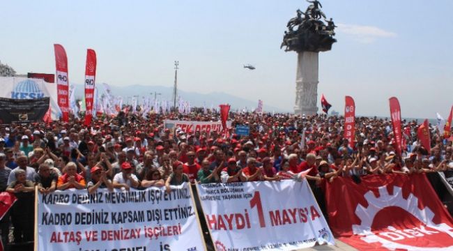 Tüm Türkiye’de olduğu gibi İzmir’de de kutlanacak 1 Mayıs Emek ve Dayanışma Günü programı netleşti. Bu yıl İzmir'de Cumhuriyet Meydanı'ndan yürüyüşle başlayacak olan 1 Mayıs program 1 Mayıs Tertip Komitesi tarafından oluşturulan etkinlikte ilk olarak işçi korosu sahne alacak. Kardeş Türküler Müzik Grubu’nun konser dinletisinin gerçekleşeceği programa İzmir Büyükşehir Belediye Başkanı Tunç Soyer de katılacak. 1 Mayıs Emek ve Dayanışma Günü için İzmir’de gerçekleşecek kutlama programı netleşti. DİSK, KESK, Türk-İş, TMMOB, İzmir Tabip Odası, İzmir Barosu’nun yer aldığı 1 Mayıs Tertip Komitesi tarafından şekillenen programa kimlerin katılacağı da belli oldu. İzmir Valiliği ve İzmir İl Emniyet Müdürlüğü ile geçtiğimiz hafta gerçekleşen bir dizi görüşme sonrasında 3 tane toplanma 1 tane de serbest giriş noktası belirlenirken kutlamaların adresi her seneki gibi Gündoğdu Meydanı olacak. Tertip Komitesi’ne DİSK Ege Bölge Temsilcisi Memiş Sarı başkanlık yapacak. Sarı, “Valilik ve emniyetle görüşmelerin sonucunda 2019 1 Mayıs’ının barış, demokrasi ve huzur içinde geçmesi konusunda her türlü girişimler yapıldı” dedi.