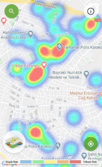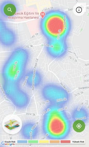 Hayat eve sığar uygulamasını indiren vatandaşlar, koronavirüs haritası renklerin anlamı ise şöyle: Kırmızı: Yüksek riskli bölge, Yeşil: Az riskli bölge, Sarı: Orta riskli bölge…