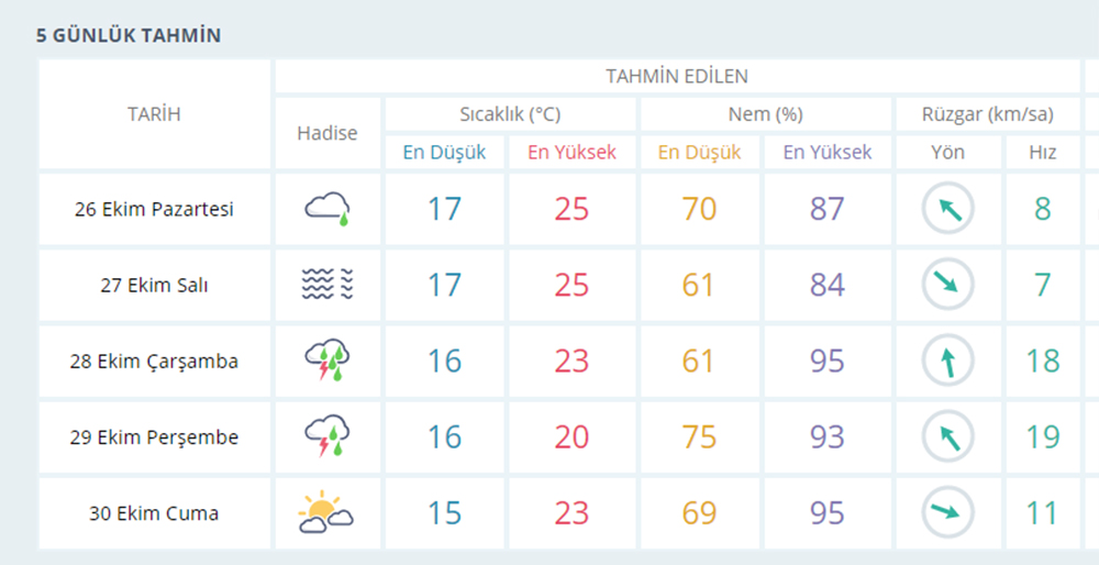 İZMİR İÇİN 5 GÜNLÜK hava TAHMİN RAPORU