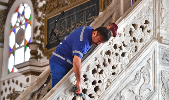 İzmir Büyükşehir Belediyesi, yaklaşan Kurban Bayramı öncesi ibadethanelerdeki temizlik çalışmalarına hız verdi. İZBETON bünyesindeki ekipler, camileri minberinden avizesine kadar baştan sona temizliyor.İzmir Büyükşehir Belediyesi, yurttaşların temiz ve sağlıklı bir şekilde ibadet edebilmelerini sağlamak için camilerde detaylı temizlik çalışması yürütüyor. İZBETON A.Ş. bünyesinde görev yapan ekipler, yaklaşan Kurban Bayramı öncesi faaliyetlerini hızlandırdı. Son olarak Tarihi Kemeraltı Çarşısı’nda yer alan Hisar Camii’nde temizlik yapıldı.A’dan Z’ye temizlikEkipler, tarihi caminin ahşap aksamlarını özel deterjanlarla teker teker sildi. Caminin avizeleri dezenfektanlarla yıkandı, silinerek temizlendi. Halıların tamamı süpürüldü ve yıkandı. Caminin minberinden mihrabına, camlarından duvarlarına kadar köşe bucak temizliği tamamlandı. Ekipler, belirlenen periyotlarla İzmir genelindeki ibadethanelerin temizliğini yapmaya devam edecek.Bütün ibadethaneler temizleniyorÇalışmalar hakkında bilgi veren İZBETON İbadethane Temizlik Ekip Sorumlusu Özkan Çiçek, “Biz her gittiğimiz camide cam, çerçeve, ahşap aksam, avize temizliği, halı yıkaması gibi komple genel bir temizlik yapıyoruz. Lavabolara kadar, şadırvanlara kadar girerek temizliğimizi yapıyoruz. Bu hizmetleri sadece camilerimizde değil, cemevi, kilise, sinagog gibi bütün ibadethanelerde yapıyoruz. İzmirlilerin sağlıklı bir şekilde ibadet edebilmeleri için çalışmalarımıza hız kesmeden devam edeceğiz” diye konuştu.