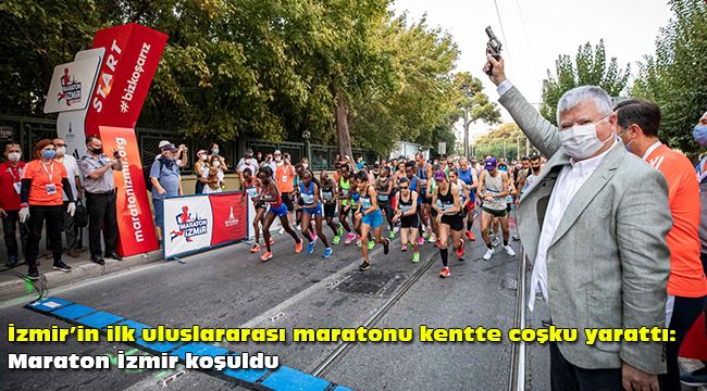 İzmir Büyükşehir Belediyesi’nin düzenlediği kent tarihindeki ilk uluslararası maraton koşuldu. Pandemi önlemleri kapsamında getirilen kota nedeniyle yaklaşık bin kişinin katıldığı 42 ve 10 kilometrelik koşular kentterenkli görüntülere sahne oldu. Sıkı pandemi önlemleriyle yapılan maratona Burundi, Kenya ve Etiyopyalı atletler damga vurdu. 16 yaşından 65 yaşına kadar her yaştan sporcunun olduğu yarış kentte coşku yarattı.İzmir Büyükşehir Belediyesi Genel Sekreter Yardımcısı Ertuğrul Tugay42 kilometrelik parkuru tamamladı.10 kilometre koşanlar arasında İzmir Gençlik Spor İl Müdürü Murat Eskici, Göztepe Başkan Vekili Talat Papatya, İzmir Büyükşehir Belediyesi Spor Kulübü Başkanı Ersan Odaman, İzmir Büyükşehir Belediyesi Gençlik ve Spor Dairesi Başkanı Hakan Orhunbilge de vardı. Genel klasman sporcuları Kültürpark’ta yapılan törende ödüllerini aldı. Törene Türkiye Atletizm Federasyonu Başkan Vekili Ali Aksu da katıldı.