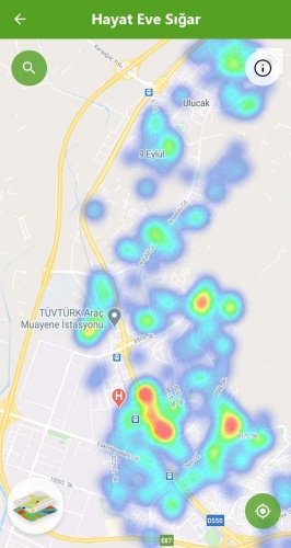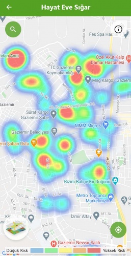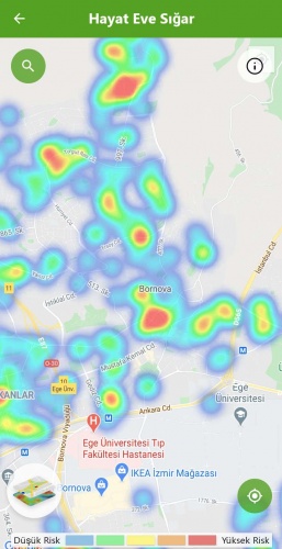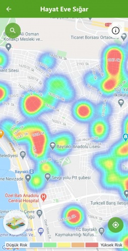 Mavi alanlar düşük riskli bölgeyi, kırmızı alanlar ise yüksek riskli alanları gösteriyor.