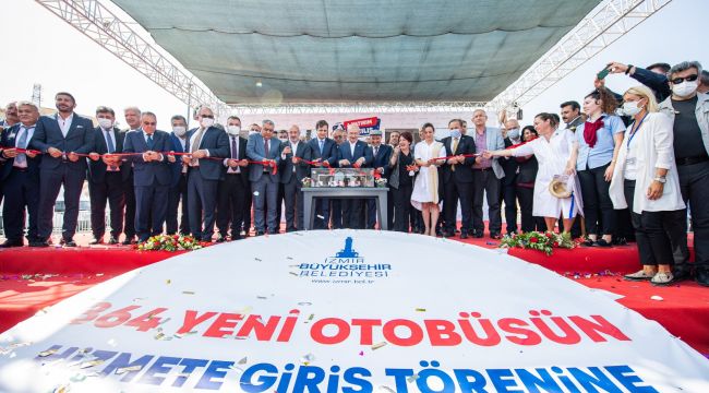 Ülke genelinde tek seferde en büyük otobüs alımına imza atan İzmir Büyükşehir Belediyesi, 570 milyon liralık yatırımla satın aldığı 160'ı körüklü, 204'ü solo olmak üzere toplam 364 yerli üretim otobüsü, CHP Lideri Kemal Kılıçdaroğlu’nun katıldığı törenle hizmete aldı. Fuar İzmir’deki tarihi törende, araçların bir bölümüyle İzmir’in simgesi Saat Kulesi figürü oluşturuldu ve altına da yine otobüslerle “Aşkla Türkiye” yazıldı. Törende konuşan CHP Lideri Kemal Kılıçdaroğlu “İzmir’in içinde çiçekler açıyor. Bunları yapan da İzmir Büyükşehir Belediye Başkanı Tunç Soyer. İzmirlilere hizmet verdiği için ona teşekkür ediyorum. Bugün dört ayrı açılış yaptık. 1 milyar liranın üzerinde toplam yatırım bedeli var. Yani 1 milyar liranın üzerinde yatırımı Başkan Tunç Soyer İzmirlilerin hizmetini sundu. Son derece mutluyum. Başkan tarımdan ulaşıma kadar her alanda çaba harcıyor. 364 otobüsü bir seferde alıp İzmirlilerin hizmetine sunmak, alım için yapılan anlaşmayla sağlanan 242 milyon liralık tasarrufu da İzmirliler ile paylaşmak yurttaşa hesap vermek demektir. Belediye başkanlarımızın en temel özelliği hesap vermektir. Harcadığı her kuruş onların parası değil, sizin paranızdır” dedi.