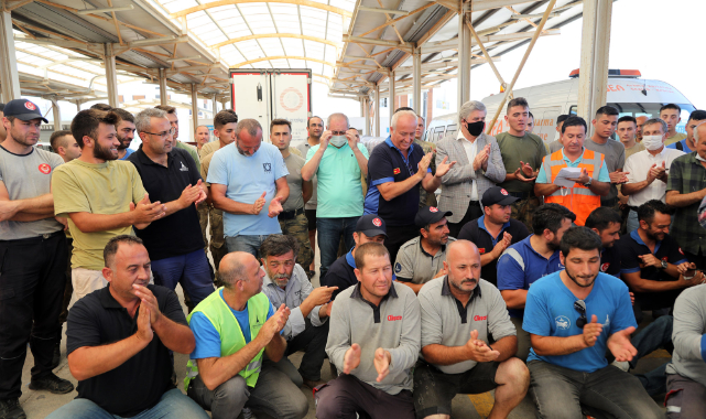 Antalya ve Muğla'daki yangın söndürme çalışmalarına ilk gününden itibaren destek veren İzmir Büyükşehir Belediyesi'nin İtfaiye Dairesi Başkanlığı personeli, Bodrum'dan alkışlarla uğurlandı.