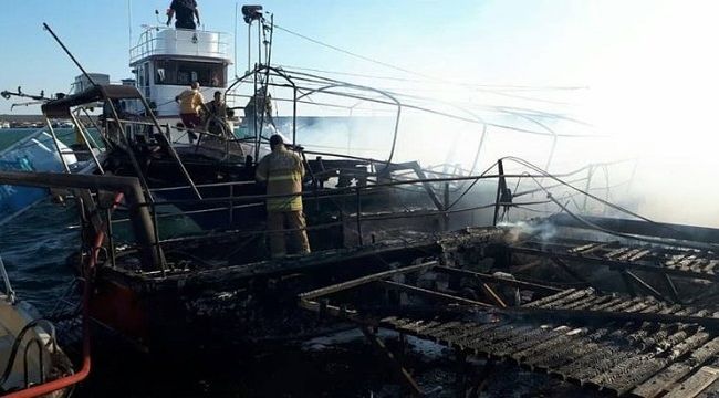 İtfaiye ekiplerinin müdahalesiyle söndürülen yangında teknelerde hasar oluştu.