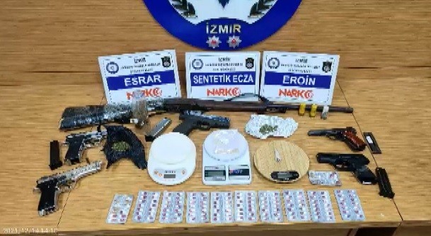 İzmir İl Emniyet Müdürlüğü Narkotik Suçlarla Mücadele Şube Müdürlüğü ekipleri, Menemen Cumhuriyet Başsavcılığının yürüttüğü soruşturma kapsamında, torbacı tabir edilen sokak satıcılarına yönelik yürüttüğü çalışma kapsamında, uyuşturucu ticareti yaptığı belirlenen 58 şüpheliyi tespit etti. Harekete geçen polis ekipleri, önceden belirlenen adreslere özel harekat polisleri desteği ve narkotik dedektör köpeklerinin de katılımıyla operasyon düzenledi. Adreslerde yapılan aramalarda, 41 gram esrar-skank, bir miktar eroin, bir miktar metamfetamin, 38 adet ecstasy hap, 3 bin 590 adet sentetik ecza maddesi ile 3 tabanca, 2 tüfek, 3 şarjör ve 27 adet mermi ele geçirildi. Öte yandan operasyon kapsamında belirlenen 58 şüphelinin tamamı gözaltına alındı.