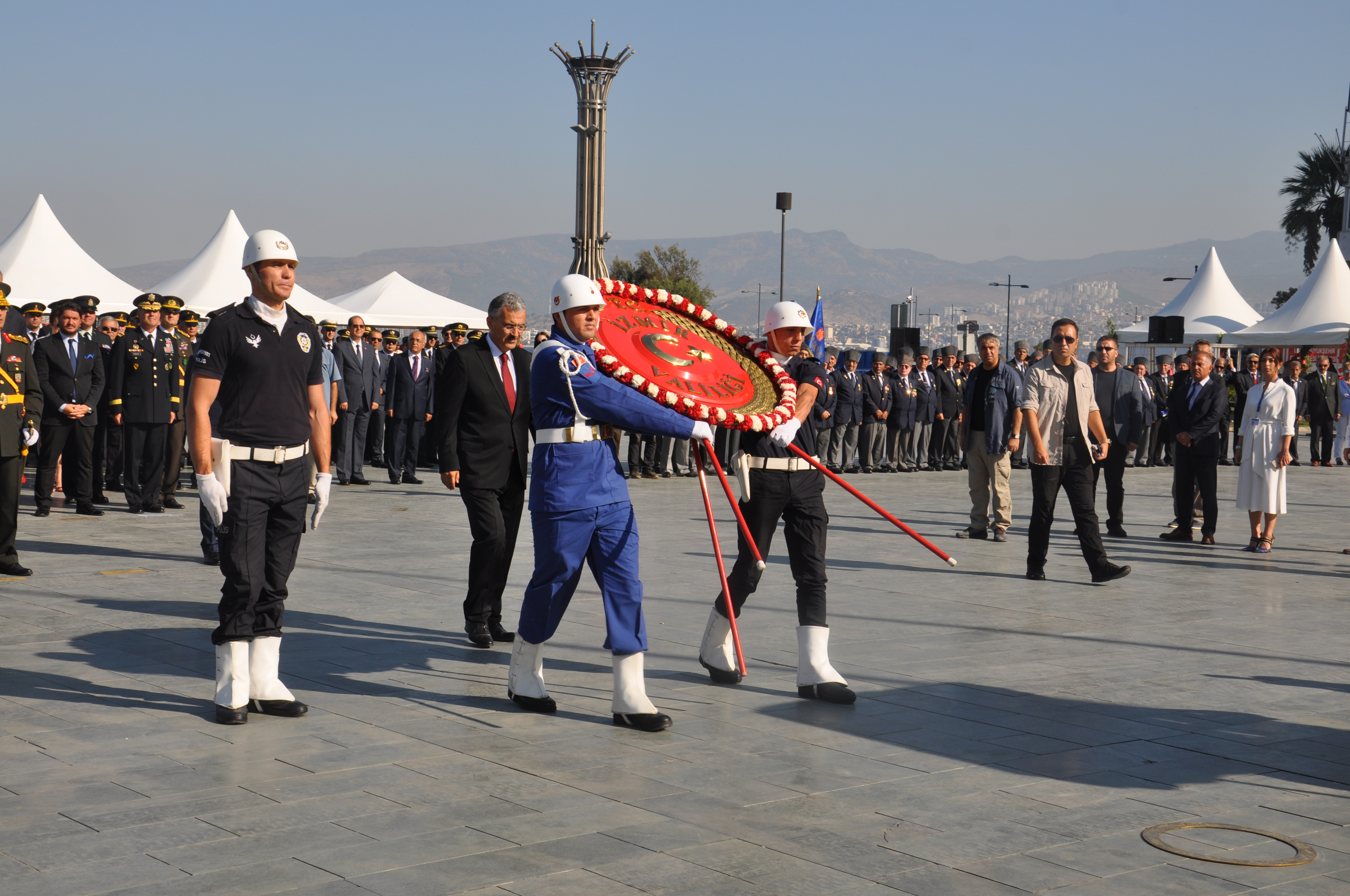 Türk milletinin şanlı tarihinin altın halkalarından biri olan 30 Ağustos Zafer Bayramı'nın 97. yıl dönümü nedeniyle İzmir'de tüm protokol Cumhuriyet Meydanı'nda yapılan çelenk sunma töreninde buluştu. Tören, Vali, Ege Ordu Komutanı ve Büyükşehir Belediye Başkanının Atatürk Anıtı'na çelenklerini sunması ardından sonlandı.