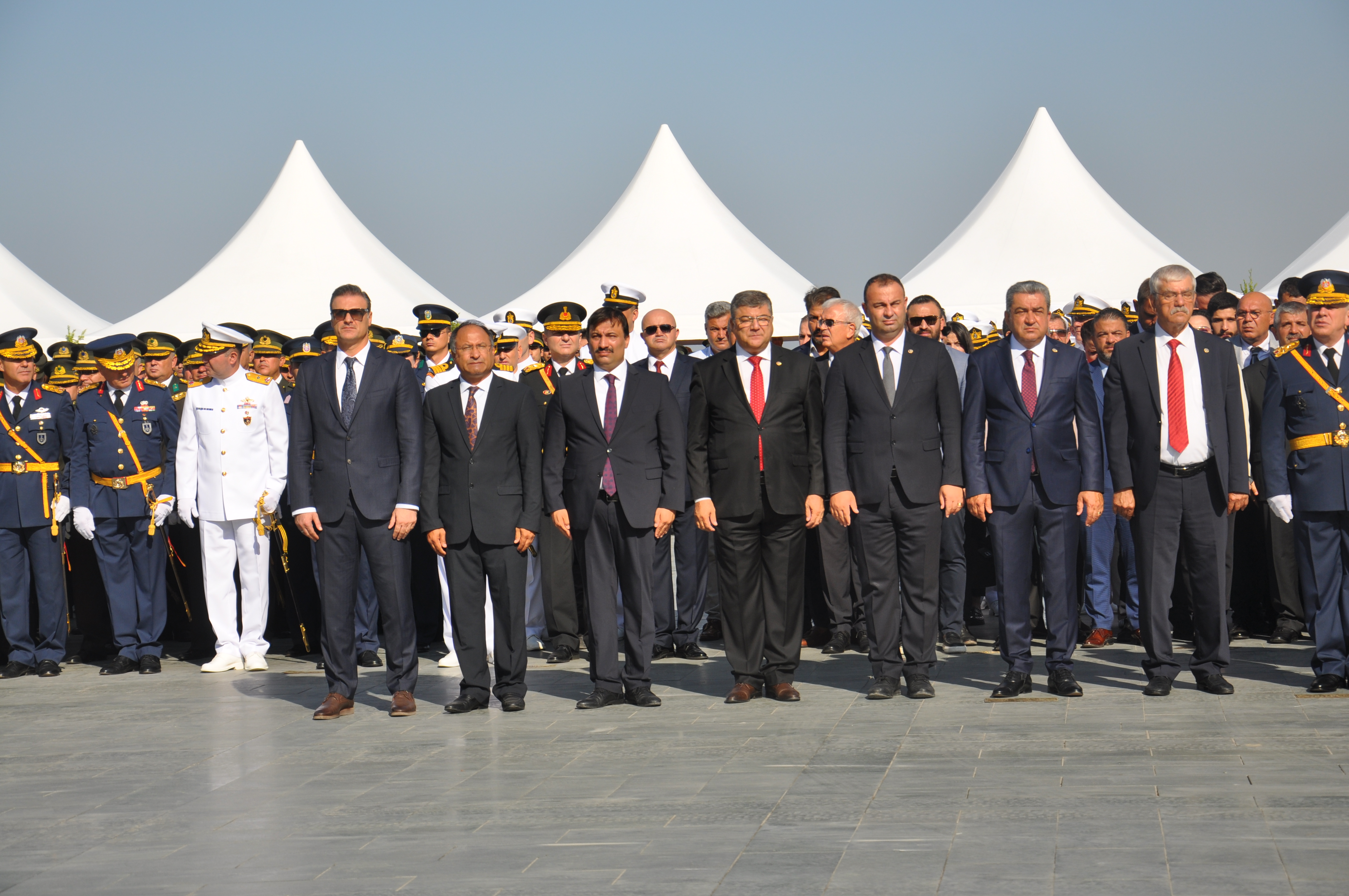 Komutanlar,rektörler ve siyasiler çelenk sunma töreninde hazır bulundular