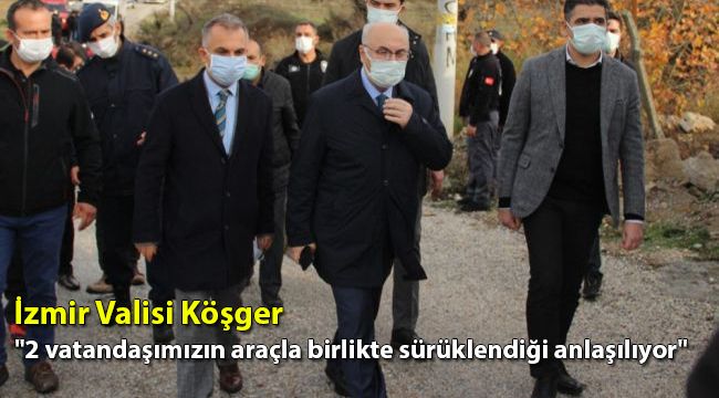 İzmir'in Menderes ilçesinde taşkın sularına kapılan 2 vatandaş için sürdürülen arama kurtarma çalışmalarını yerinde inceleyen İzmir Valisi Yavuz Selim Köşger, araç içinde bulunan 5 vatandaşın sokağa çıkma kısıtlamasını ihlal ederek yolun karşısına geçmeye çalıştığını ifade ederek, kayıp olan 2 vatandaşı arama kurtarma çalışmalarının devam ettiğini açıkladı.