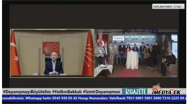 Yayına CHP Genel Başkanı Kemal Kılıçdaroğlu da görüntülü bağlandı. Kılıçdaroğlu "Her bir belediye başkanı arkadaşlarımız Covid sürecinde bir destan yazdı. Elinden gelen bütün çabayı gösterdi. Toplumun ihtiyaç sahibi olan bütün kitlelerine, dokularına bir şekliyle ulaştı. Siz de güzel bir kampanya açmışsınız. Hepinizi yürekten kutluyorum" dedi. Önemli olanın bütün engelleri aşmak olduğunu dile getiren Kılıçdaroğlu "Bütün belediye başkanı arkadaşlarım önlerine konan bütün engelleri aştılar, ihtiyaç sahiplerine ulaştılar. Onlara gerekli desteği verdiler" diye konuştu.