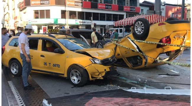 İzmir'in Konak ilçesinde 2 ticari taksinin karıştığı kazada ticarilerden biri takla attı. Kazada 2 sürücü yaralandı.