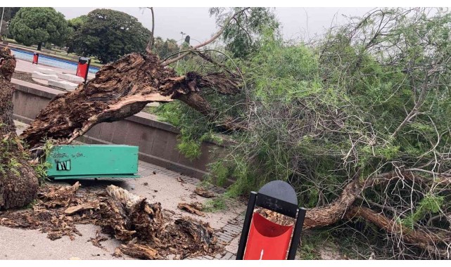 İzmir'de kuvvetli fırtına nedeniyle kent genelinde 33 ağacın zarar görürken, fırtına Menderes, Tire, Karaburun ve Foça'da çatıların uçmasına neden oldu. İzmir Büyükşehir Belediyesi ekipleri yaşanan olumsuzluklara anında müdahale etti.
