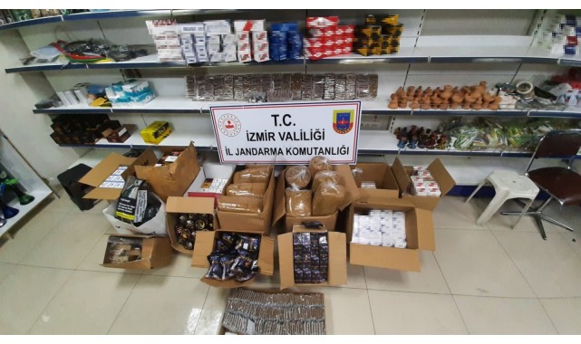 İzmir İl Jandarma Komutanlığı ekipleri, halk sağlığının korunması, her türlü kaçakçılığın ve kaçakçılıktan kaynaklanan vergi kaybının önlenmesi amacıyla Torbalı Cumhuriyet Başsavcılığı koordinesinde yürüttüğü istihbari çalışmalar neticesinde, Torbalı ilçesi Ayrancılar Mahallesinde bulunan ve kaçak tütün satıldığı tespit edilen bir iş yerine operasyon düzenledi. KOM Şube Müdürlüğü ve Ayrancılar jandarma Karakol Komutanlığı ekiplerinin düzenlediği operasyonda yapılan aramalarda, 7 bin 791 adet bandrolsüz içi doldurulmuş makaron (sigara), 47 bin 800 adet boş bandrolsüz makaron, 84 kilogram bandrolsüz kıyılmış tütün, 27 kilogram nargile tütünü, 153 bin 180 adet bandrolsüz sigara sarma kağıdı ve 14 adet TAPDK bandrolü ele geçirildi. Operasyonda 1 şüpheli hakkında yasal işlem başlatıldı.