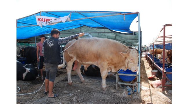 Kurban Bayramı'na sayılır günler kala İzmir'in Buca ilçesindeki Kaynaklar kurban pazarında kurbanlıklar satışa sunuldu. Türkiye'nin dört bir yanından getirilen büyük ve küçükbaş hayvanlar, hava sıcaklıklarının yüksek olması nedeniyle satıcıları tarafından sık sık suyla serinletiliyor. Kaynaklar'daki kurban pazarının maskotu ise 'Paşa' isimli dana oldu. Bin 200 kiloluk Paşa'ya, 33 bin TL fiyat biçildi.