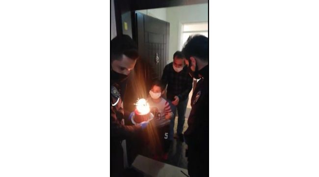 Bayraklı İlçe Emniyet Müdürlüğü ekipleri 7 yaşındaki çocuğa pastalı doğum günü sürprizi yaptı.