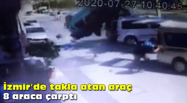 İzmir'in Bayraklı ilçesinde meydana gelen feci kazada bir araç, 8 aracın üzerinde takla attı. Havada metrelerce takla atan aracın sürücüsü olayda yaralanırken, dehşet anları bir iş yerinin güvenlik kamerası tarafından kaydedildi.