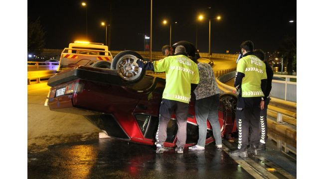 İzmir'in Bayraklı ilçesinde sürücüsünün direksiyon hakimiyetini kaybettiği bir araç takla attı. Araç içerisinde yaralanan sürücü ambulansla hastaneye kaldırıldı.