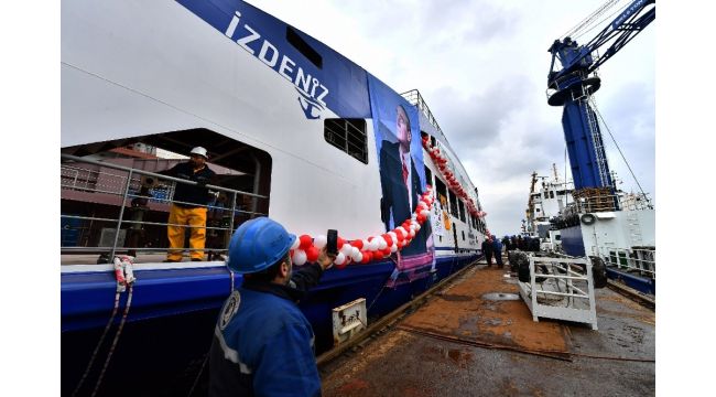 Öte yandan adı İzmirlilerin sosyal medya üzerinden katılacağı bir anketle belirlenecek gemi, kurdele kesiminden sonra işçilerin alkışları ve İzmir Marşıyla suya indirildi.