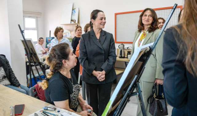 İzmir Büyükşehir Belediye Başkanı Dr. Cemil Tugay’ın eşi Öznur Tugay’ın öncülüğünde başlatılan İzmirli belediye başkanlarının eşlerini bir araya getiren buluşma etkinliği Bayraklı’da devam etti. Bayraklı Belediye Başkanı İrfan Önal’ın eşi Gökçe Önal’ın ev sahipliği yaptığı buluşmanın ilk durağı Bayraklı Belediyesi Hasan Tahsin Kültür Merkezi oldu. Toplantı ilk olarak Bayraklı Belediyesi’nin kadın ve aileler ile ilgili hizmetleri hakkında yapılan sunumla başladı. Ardından Öznur Tugay ve başkan eşleri, kültür merkezinde yer alan Bayraklı Belediyesi’nin düzenlediği dikiş, resim, ahşap boyama, müzik, el sanatları gibi hobi ve meslek kurslarını gezerek kursiyerlerle sohbet etti. Bahar Evi hizmete açıldı