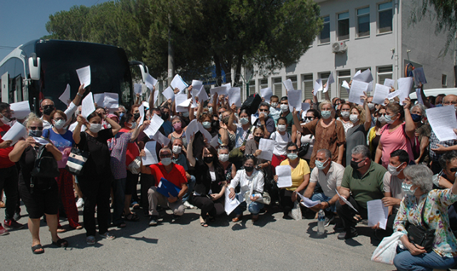 "Bizler, Çevre ve Şehircilik Bakanlığı tarafından 7 adet proje alanına dahil edilerek Bayraklı'daki diğer depremzedelerden ayrıştırılan, aslında en mağdur olan grubuz. Bakanlık tarafından 7 adet proje alanına ayrılarak tapularımıza el konuldu. Mülkiyetlerimiz bizlerin izni ve bilgisi dışında elimizden alındı, hazineye devroldu. 7 ayrı proje alanı, 7 ayrı firmaya bilmediğimiz şartlarda ihale edildi. Katlarımız 8'den 5'e indirildi, metrekarelerimiz yarı yarıya düşürüldü. 120-130 metrekare olan evlerimiz 60-70 metrekare olarak yapılıyor. Üstüne bize satılıyor. Ziraat Bankası'nın boş borçlandırma senetlerine zorla imza attırıldık, atmazsak arsa paramızı alıp gideceğimiz söylendi.
